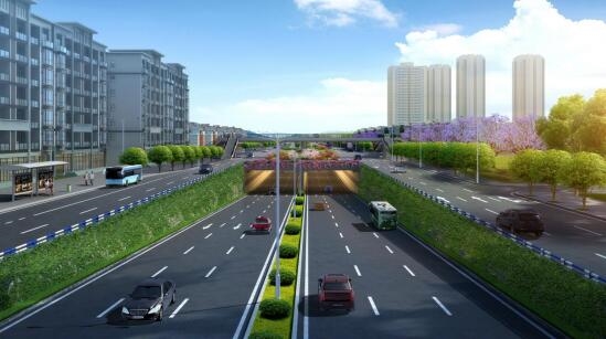 金渝大道與龍健路節(jié)點工程位于鴛鴦組團南部,西側(cè)為金山隧道,東側(cè)為鴛鴦立交,北側(cè)為湖津路,南側(cè)為龍寧路。立交主線金渝大道全長800米,含4條匝道,總長為1112.472米。項目通車后保證了金渝大道直行過境交通的暢通性,提高了金渝大道對項目區(qū)域地塊的服務功能。本項目同時獲得2022年度重慶市市政工程金杯獎