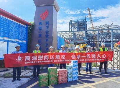 近日,重慶設(shè)計(jì)集團(tuán)市建科院公司黨委副書記、總經(jīng)理、董事張雪芹同志赴科學(xué)城分院承接鋼結(jié)構(gòu)監(jiān)測(cè)業(yè)務(wù)的西部(重慶)科學(xué)城科學(xué)會(huì)堂項(xiàng)目,慰問在高溫酷暑中堅(jiān)守崗位的一線職工,為他們送去防暑降溫用品與真誠關(guān)懷。