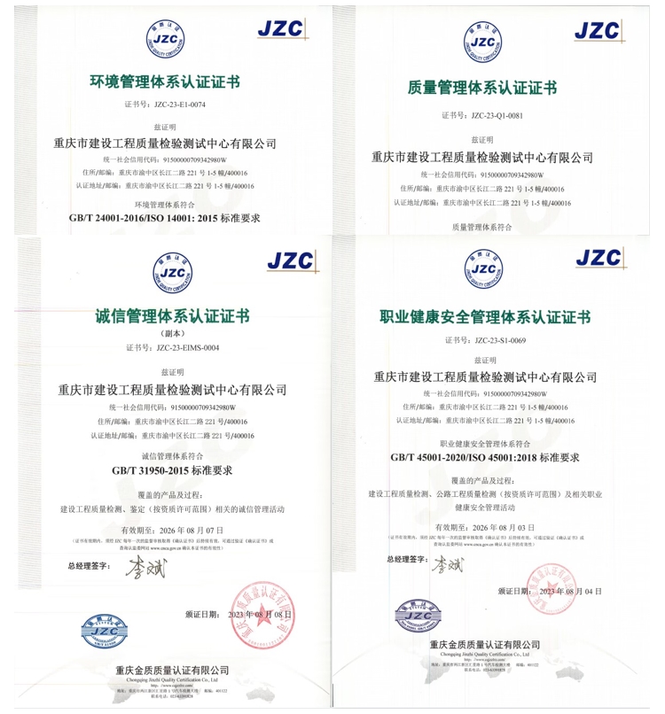 近日,經(jīng)過質量、環(huán)境、職業(yè)健康安全、誠信管理體系現(xiàn)場評審,重慶設計集團市建科院公司所屬子公司——重慶市建設工程質量檢驗測試中心有限公司(簡稱檢測中心)順利通過2023年度ISO資質再認證評審。
