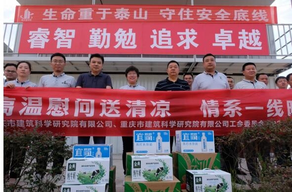 為切實做好高溫酷暑期間的防暑降溫工作,關(guān)心關(guān)愛一線職工身心健康,88午,市建科院公司黨委副書記、董事、工會主席廖學(xué)文同志帶隊赴監(jiān)理咨詢五公司承擔(dān)監(jiān)理的巴南經(jīng)濟園區(qū)界石工業(yè)園 S 標(biāo)準(zhǔn)分區(qū)配套設(shè)施工程(道路工程)項目開展高溫慰問活動,奮戰(zhàn)在項目一線的職工送去清涼關(guān)懷。