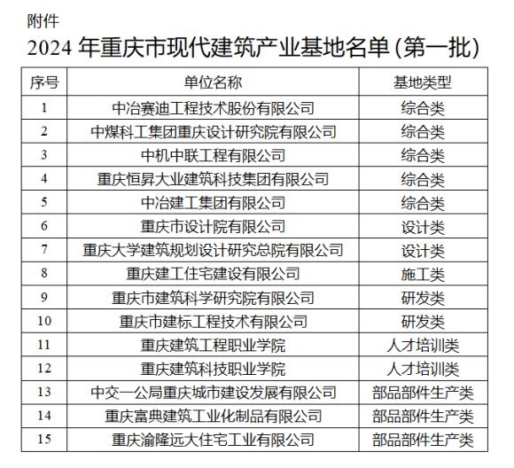 市建科院公司獲批“重慶市現(xiàn)代建筑產(chǎn)業(yè)基地”