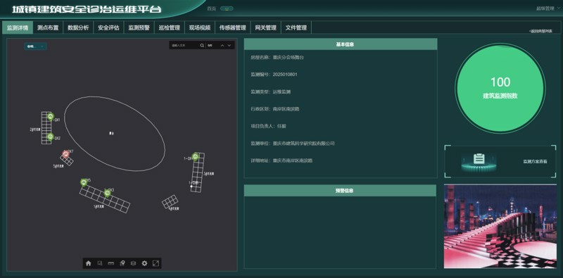 春晚重慶分會(huì)場(chǎng)臨時(shí)搭建舞臺(tái)位于南岸區(qū)南濱路彈子石廣場(chǎng),此次評(píng)估工作范圍覆蓋了春晚分會(huì)場(chǎng)舞臺(tái)臨時(shí)搭建結(jié)構(gòu)的各個(gè)環(huán)節(jié)。市建科院評(píng)估小組首先對(duì)舞臺(tái)整體結(jié)構(gòu)進(jìn)行了細(xì)致勘察,借助專業(yè)檢測(cè)設(shè)備對(duì)舞臺(tái)的承重能力、支撐結(jié)構(gòu)的穩(wěn)固性等關(guān)鍵指標(biāo)進(jìn)行了精準(zhǔn)測(cè)量、計(jì)算分析,開展舞臺(tái)基座荷載試驗(yàn),并在舞臺(tái)燈光架體上設(shè)置自動(dòng)化監(jiān)測(cè)設(shè)備,在滿足每平米承重300公斤以上需求的同時(shí)保障了燈光架體的安全。評(píng)估小組還與春晚分會(huì)場(chǎng)工作人員進(jìn)行充分溝通交流,詳細(xì)了解日常工作中遇到的安全問題以及應(yīng)對(duì)措施,對(duì)于潛在安全隱患提出整改意見建議,進(jìn)一步加強(qiáng)安全管理工作,確保春晚分會(huì)場(chǎng)運(yùn)行安全、穩(wěn)定、有序。