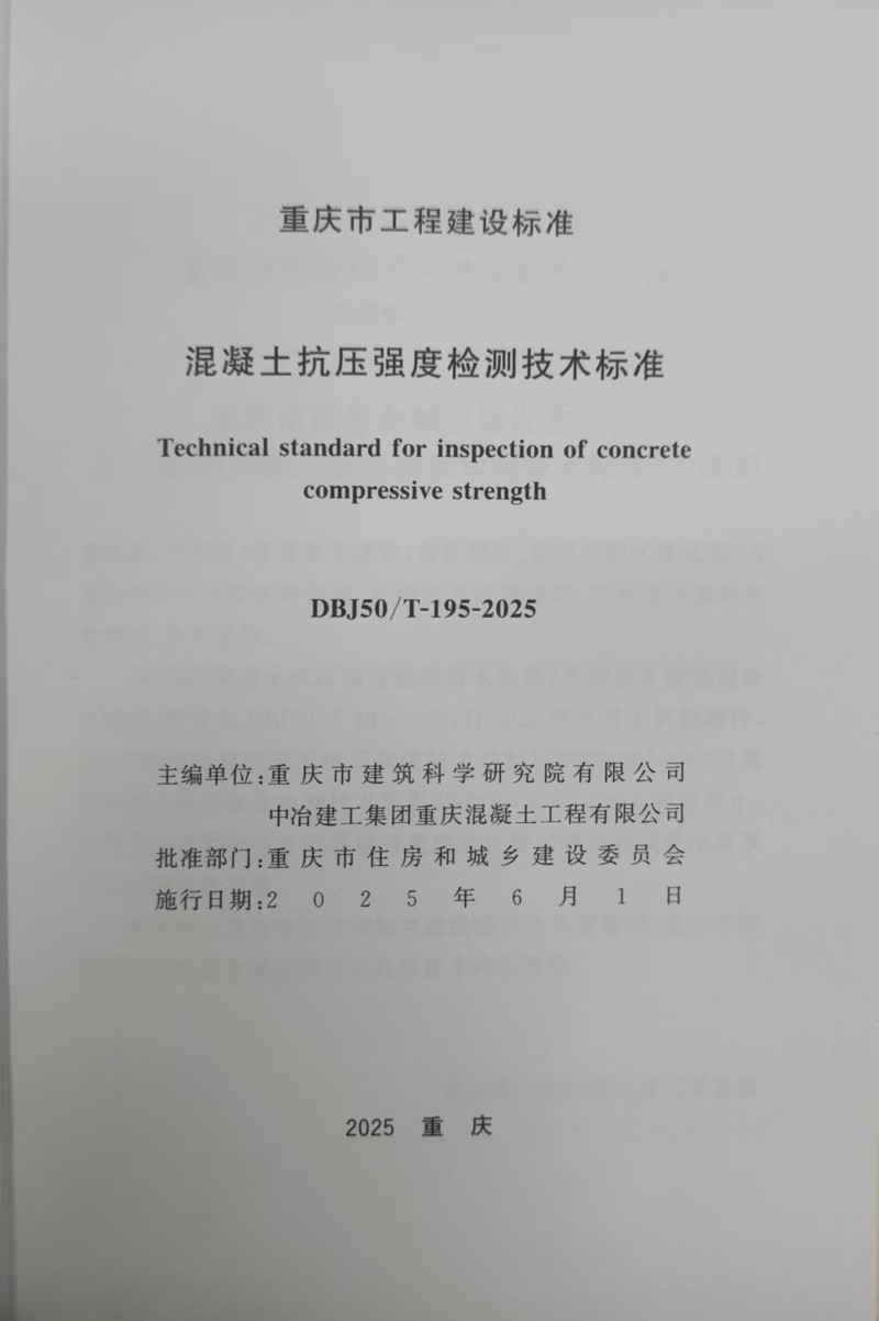 近日,由重慶設(shè)計(jì)集團(tuán)所屬子企業(yè)重慶市建筑科學(xué)研究院有限公司(以下簡稱“市建科院”)聯(lián)合中冶建工集團(tuán)重慶混凝土工程有限公司主編的重慶市《混凝土抗壓強(qiáng)度檢測技術(shù)標(biāo)準(zhǔn)》(DBJ50/T-195-2025)(以下簡稱《標(biāo)準(zhǔn)》)正式發(fā)布,經(jīng)重慶市住房和城鄉(xiāng)建設(shè)委員會(huì)批準(zhǔn),將于2025年6月1日正式實(shí)施。
