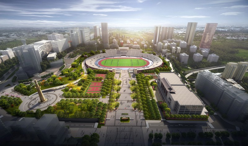 2020年,《大田灣體育場保護(hù)與利用工程規(guī)劃與建筑設(shè)計(jì)方案》審定通過,由市建科院承擔(dān)監(jiān)理的大田灣體育場保護(hù)與利用工程正式啟動。該工程主要包括新建、拆除和修繕三部分內(nèi)容:保護(hù)修繕大田灣體育場文物建筑,建設(shè)配套用房,打造"全民健身中心";拆除非核心功能建筑;整治提升中軸景觀文化風(fēng)貌,建設(shè)生態(tài)體育公園;兼顧防災(zāi)避難功能,配建3.6萬平方米地下車庫,新增780個(gè)停車位;優(yōu)化周邊交通組織,包括10條人行通道、2條車行通道和1條環(huán)形隧道,實(shí)現(xiàn)人車分流;對市級文物進(jìn)行保護(hù)修繕,文物修繕加固面積約8000平方米,包含足球場、田徑場及2.32萬個(gè)看臺座椅;增設(shè)籃球場5個(gè)、乒乓球臺8個(gè)、網(wǎng)球場2個(gè)、氣排球場1個(gè)、門球場2個(gè)。項(xiàng)目總建筑面積4.29萬平方米,園林景觀總面積約7萬平方米。