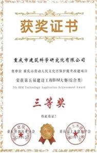 重慶市第五屆建設(shè)工程BIM大賽三等獎(jiǎng)