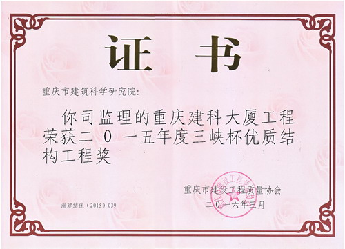 建科大廈工程獲三峽杯優(yōu)質(zhì)結(jié)構(gòu)工程獎(jiǎng)